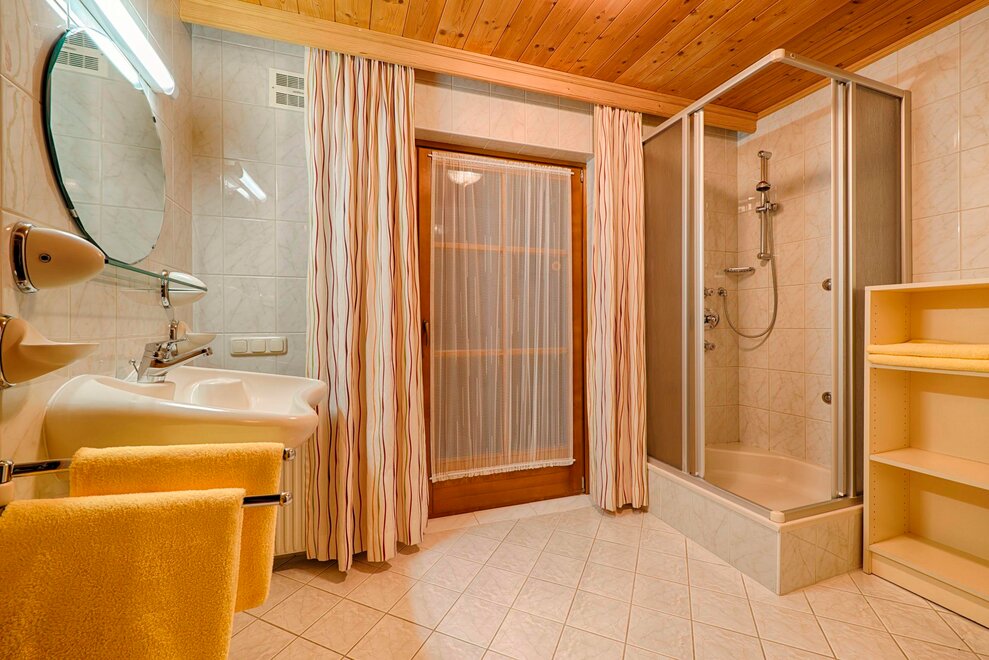 130 m² holiday apartment on 2 floors in a wooden block house for 10 to 12 people, with tiled stove, TV, dishwasher, stove (oven), microwave, shoe dryer.
