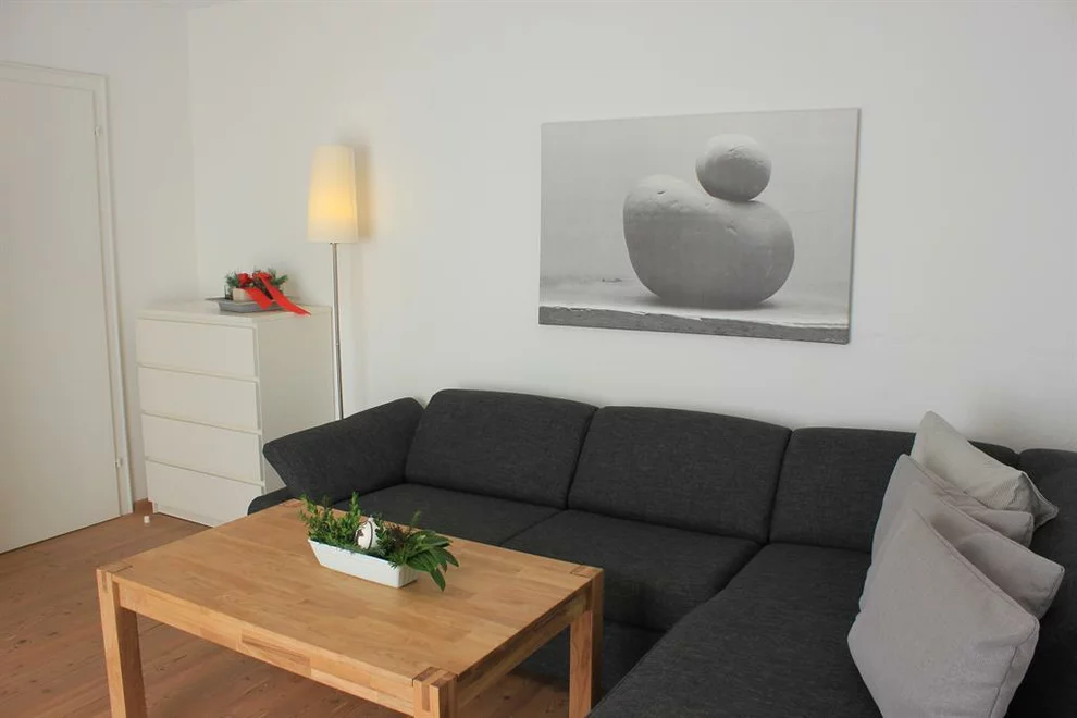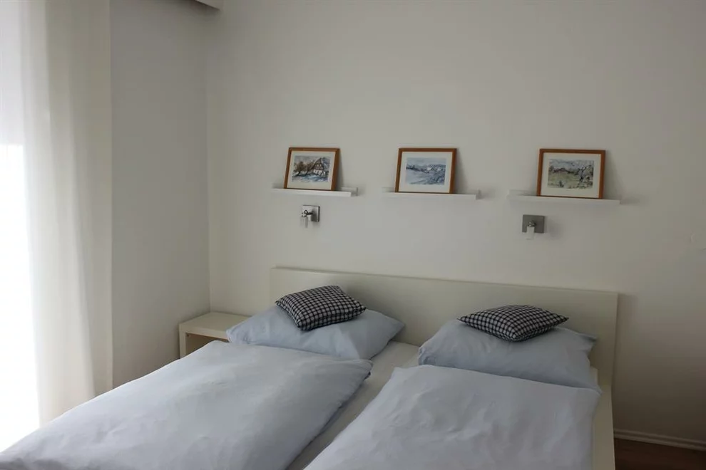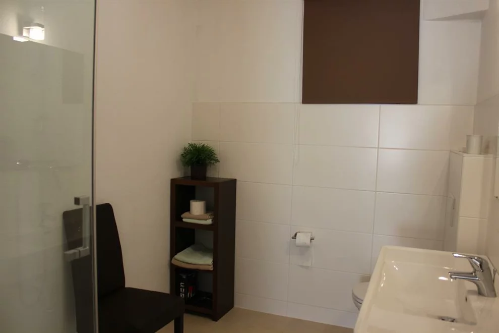 Completely furnished apartment. Living-sleeping area with shower, WC and TV, 2 bedrooms each with shower/WC, 1 spacious, modern living kitchen including dishwasher, towels and bed linen.