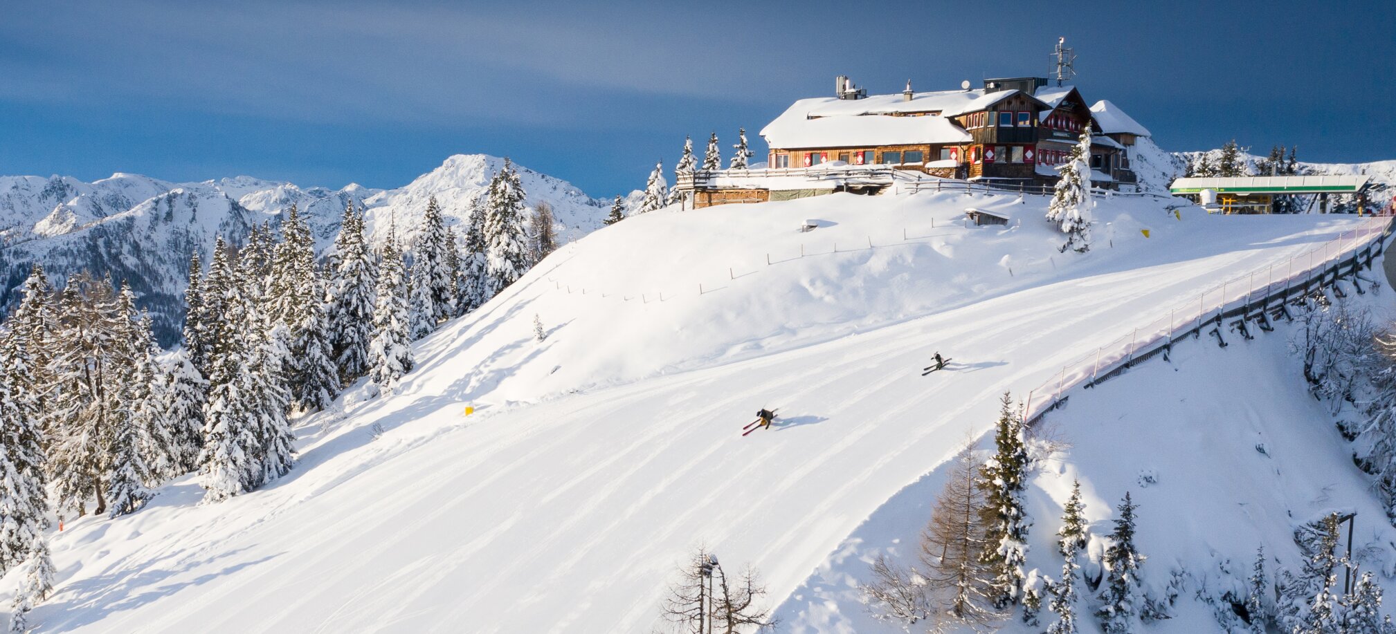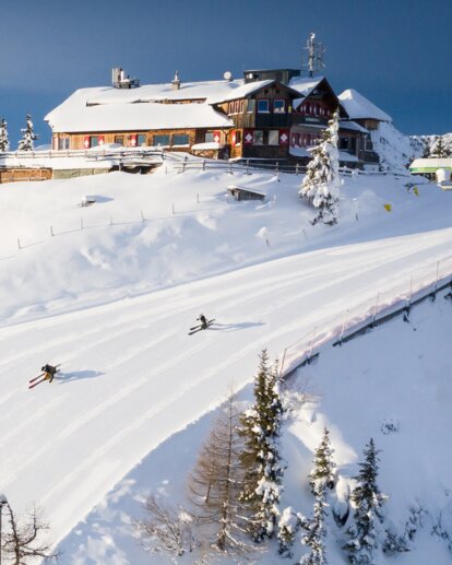 The so-called Hopsi slope is ideal for young skiers for a fun-filled descent from the Obertalbahn mountain station back to the valley station of the Gipfelbahn Hochwurzen.